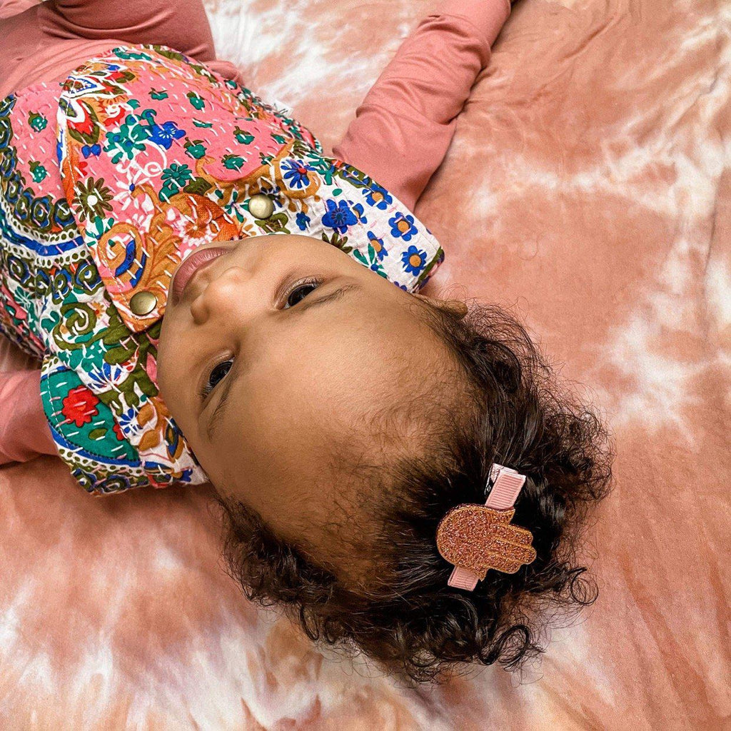Available in many color combination, each hamsa measures 1.5 inches tall and is available on our no slip alligator clip or pin. They make the perfect gift and are great to clip in hair or pin to a bag, stroller, baby carrier, camera strap, sweater, or even sneakers!