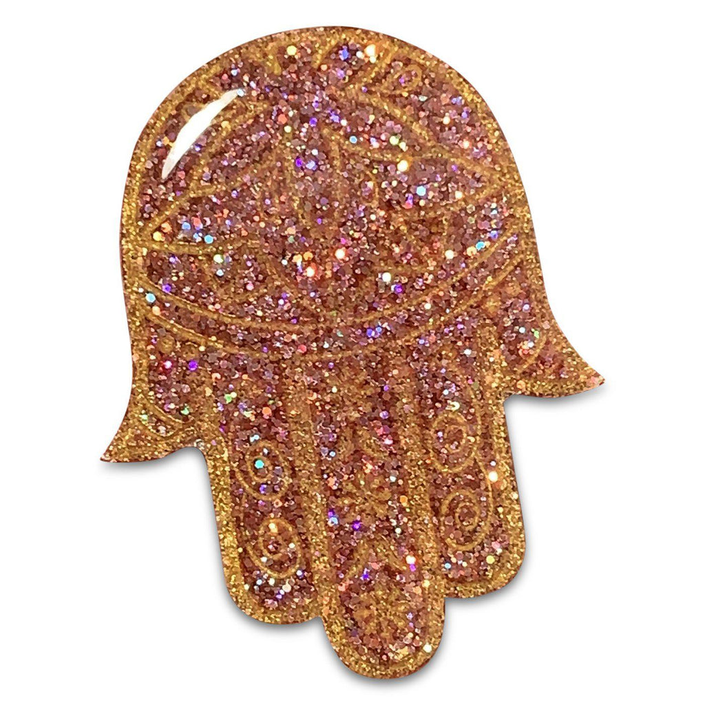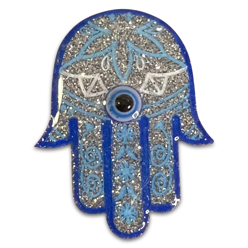 My father was born in Spanish Morocco and I grew up with Jewish Sephardic traditions, including the symbol of the Hamsa. My children had Hamsa pins attached to their strollers as babies, I had them attached to my bags, we have Hamsa decor in our home, I wear Hamsa jewelry, and now I have one of these Hamsa liquid resin shakers on my fridge!