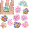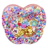Resin liquid shakers are different from our puffed vinyl pouch shakers that have confetti and air inside. Resin liquid shakers are resin cavities (which I make from my resin molds) filled with confetti and other embellishments and liquid (usually baby oil). The cavity is covered with a protective film and a layer of resin on top of that. You may notice a covered hole somewhere along the outer edge, which is where I drilled the hole to insert the baby oil and then sealed it. Please leave that spot alone to make sure everything stays in tact. Watch the confetti and embellishments move when the shaker is being turned! Resin liquid shakers are a true labor of love with many steps involved to create a unique resin item for you.