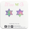 These stars are solid, so there are no holes/openings by each of the six points of the stars. They are approximately 5/8" (16mm) tall x 1/2” (14mm) wide and are available on our stainless steel posts for those sensitive pierced ears or clear plastic clip ons for non pierced ears.