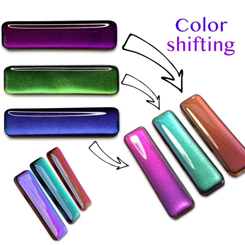 These no slip color shifting resin bar hair clips are amazing and they are great for all ages. The word "bar" refers to the shape of the clip. Each color shifts to a different color when it moves in the light. The colors are perfect for Fall. Color shfiting clips match so many things since there is such a big range of colors in just one clip.