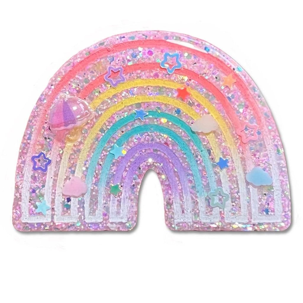 Each colorful rainbow was hand painted and decorated with coordinating embellishments (hand applied), including an adorable mini umbrella, followed by multiple coats of resin. These were definitely made with love. These were so fun to make and I can't wait to see which you choose.
