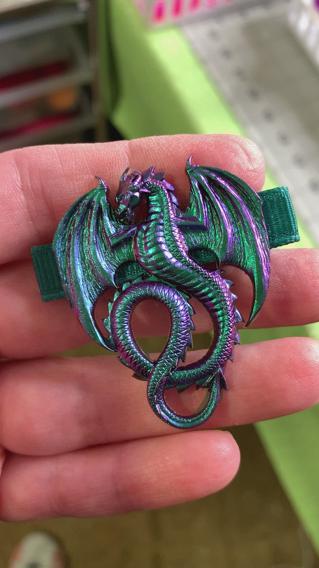 Magical, fun, and not so scary handmade resin dragon hair clips. Choose from color shifting, metallics, pastels, and even mood changing (the mood changing dragons change colors with the warmth of the hand or the actual sun) dragons.