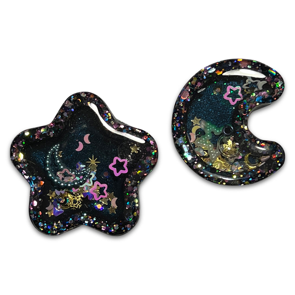 These no slip resin moon & stars liquid resin shaker hair clips are colorful, fun, and sure to bring smiles from everyone. A unique, one of a kind, special gift for birthdays, any time of year (especially Spring & Summer), and even just for fun.