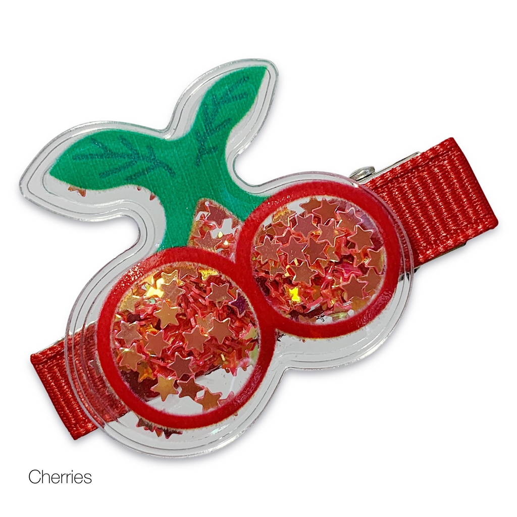 Looking for an original and fun hair accessory? Our Fruit & Candy Shaker Hair Clips are it!