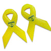 These hostage awareness resin pieces measure 2-2.5 inches. They are available on our no slip alligator clip and on a pin as well. You can wear it in your hair, on your clothing or your bag (and wherever else you can think of).