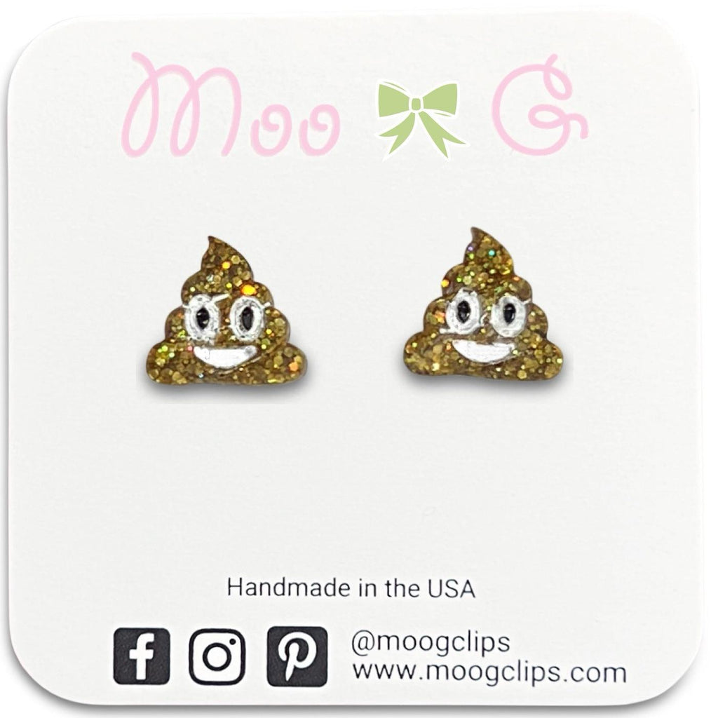 These glitter 💩 emoji resin earrings are SO fun and will surely bring smiles. The face is hand painted, they measure approximately 1/2," and are available on our stainless steel posts for those sensitive pierced ears or clear plastic clip ons for non pierced ears.
